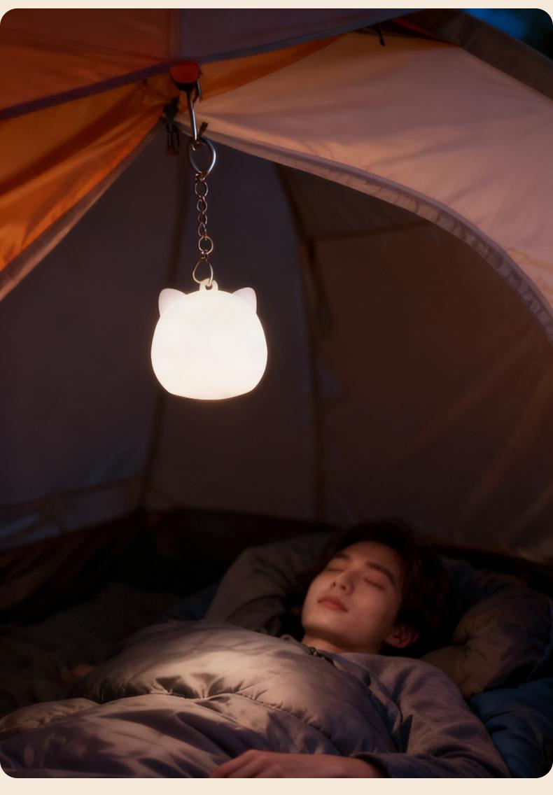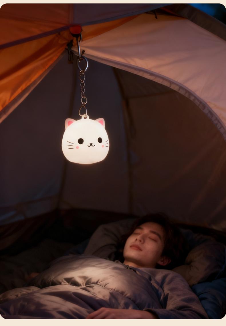Crafted from premium, pet-safe silicone that's gentle to touch and built to last. The compact cat shape fits perfectly in your hand, on your nightstand, or in your bag – making it ideal for home, travel, or camping adventures.