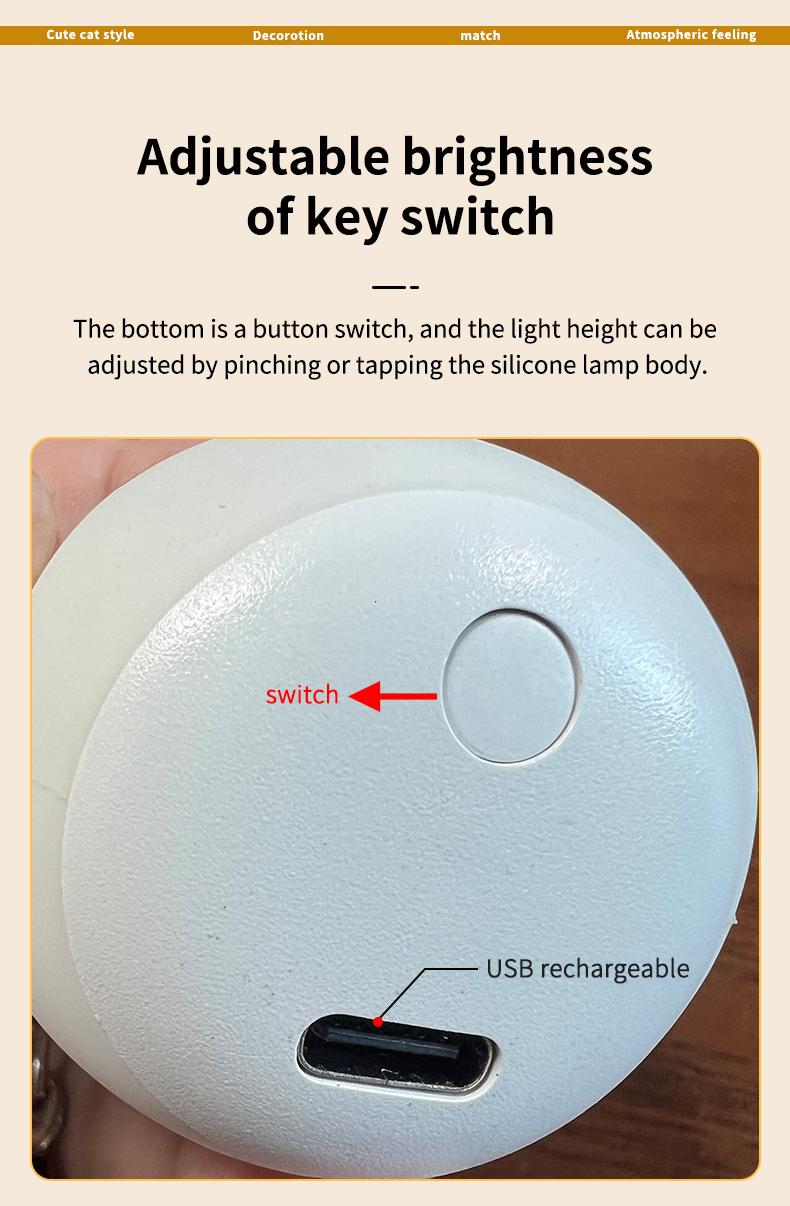 Rechargeable Cat Night Light - Silicone LED Lamp for Kids & Pets